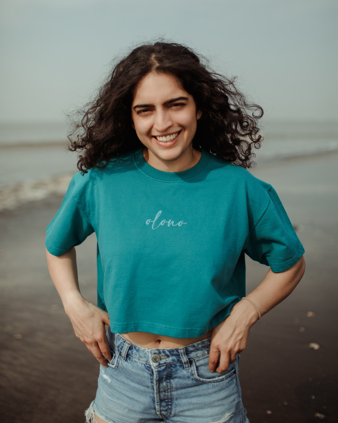 Aqua, cool, grounded, effortlessly calm. This 100% cotton oversized crop tee in 260gsm fabric delivers luxurious softness with understated sophistication. Fluid, light, and unmistakably you.